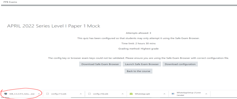 - Candidates will only be able to attempt the Mocks and Exams if they are using Safe Exam Browser.